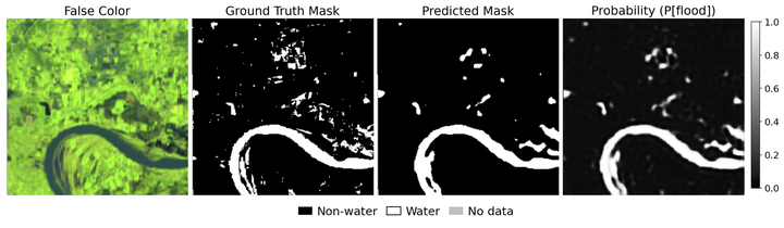 Recent work led by Dr. Tulbure explores geospatial foundation models (GFMs) for global flood mapping. In the study, the team investigated how well GFMs can detect flooding globally. TerraMind was adapted for flood mapping using FloodsNet, a global dataset combining radar and optical satellite imagery, across 85 flood events. Results were compared against both a reference TerraMind setup and a traditional deep-learning architecture.